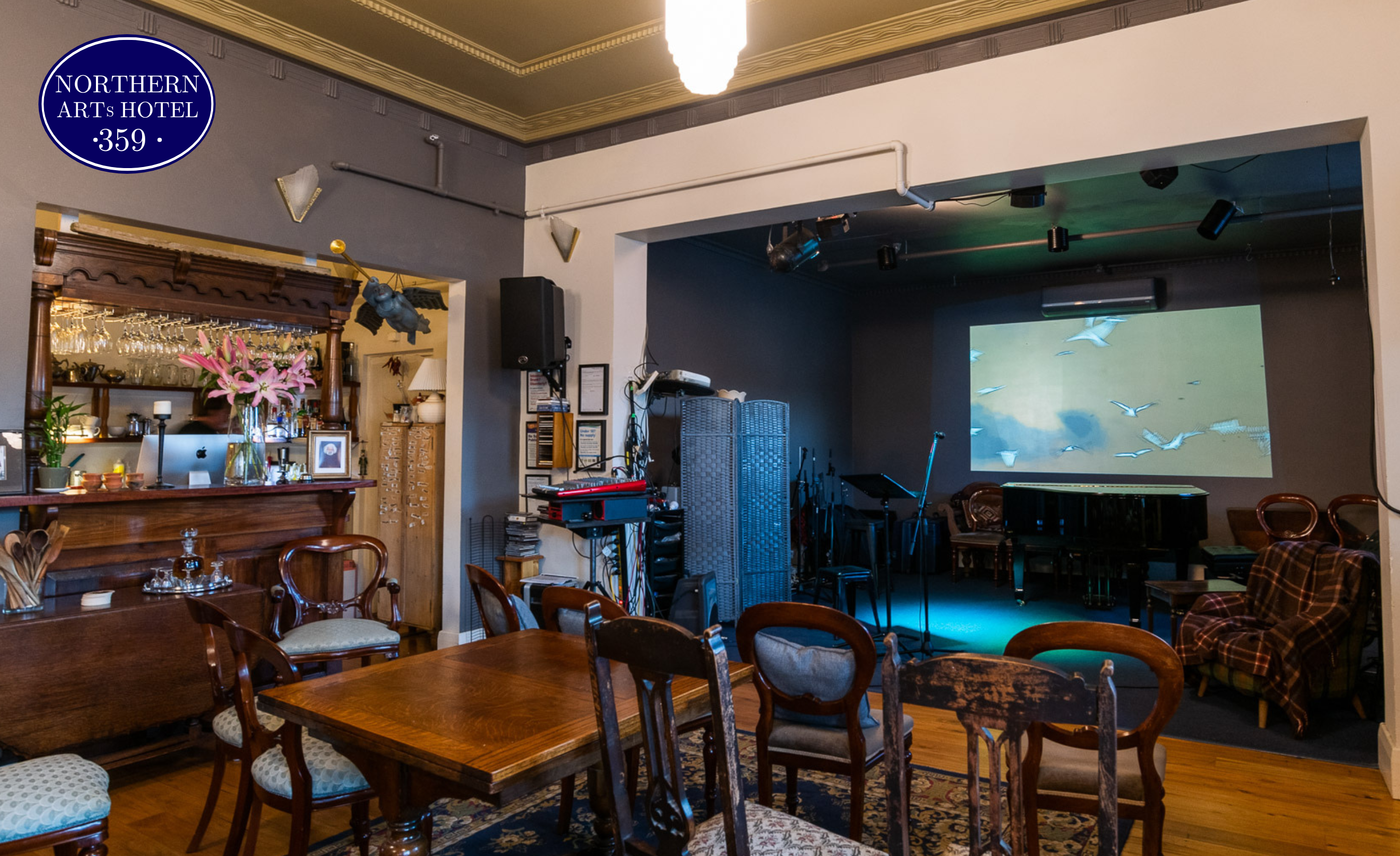A recent audience member recently said; ‘warm, welcoming space with great decor reflective of the sophisticated, eclectic tastes of the proprietors. Next, it is the sort of people they attract—the kind of people who pursue the Muse rather than the moolah—and those who support them.’ Cheryl Jorgenson.